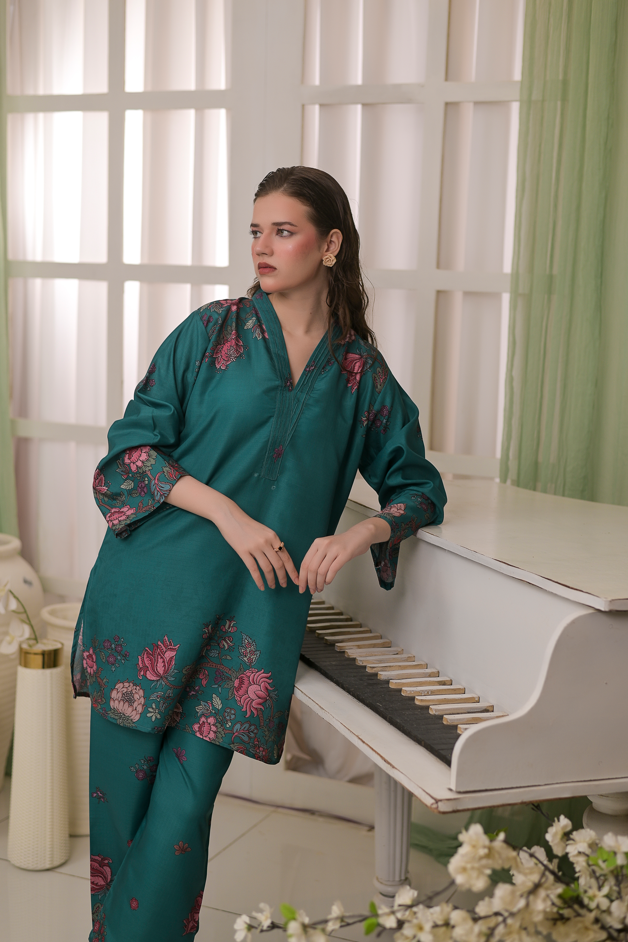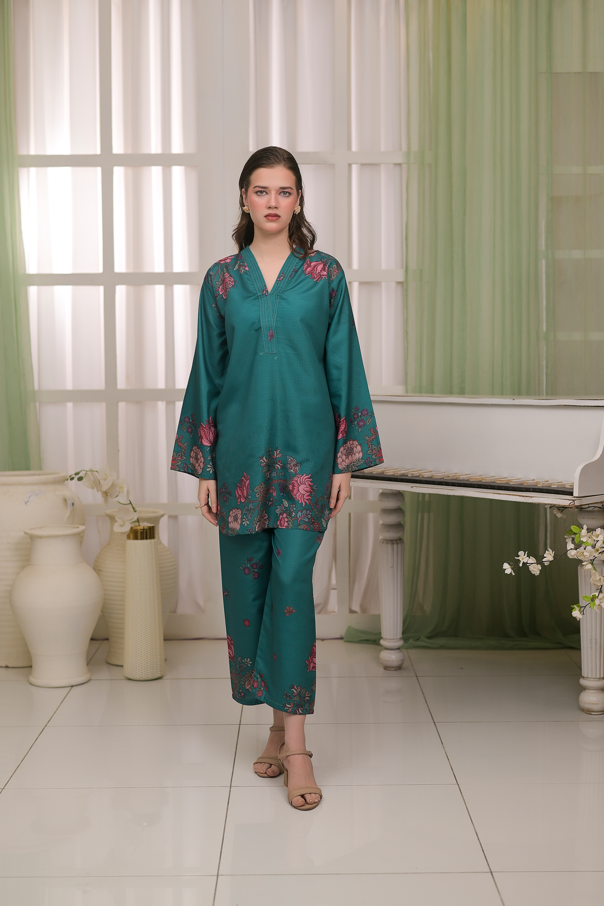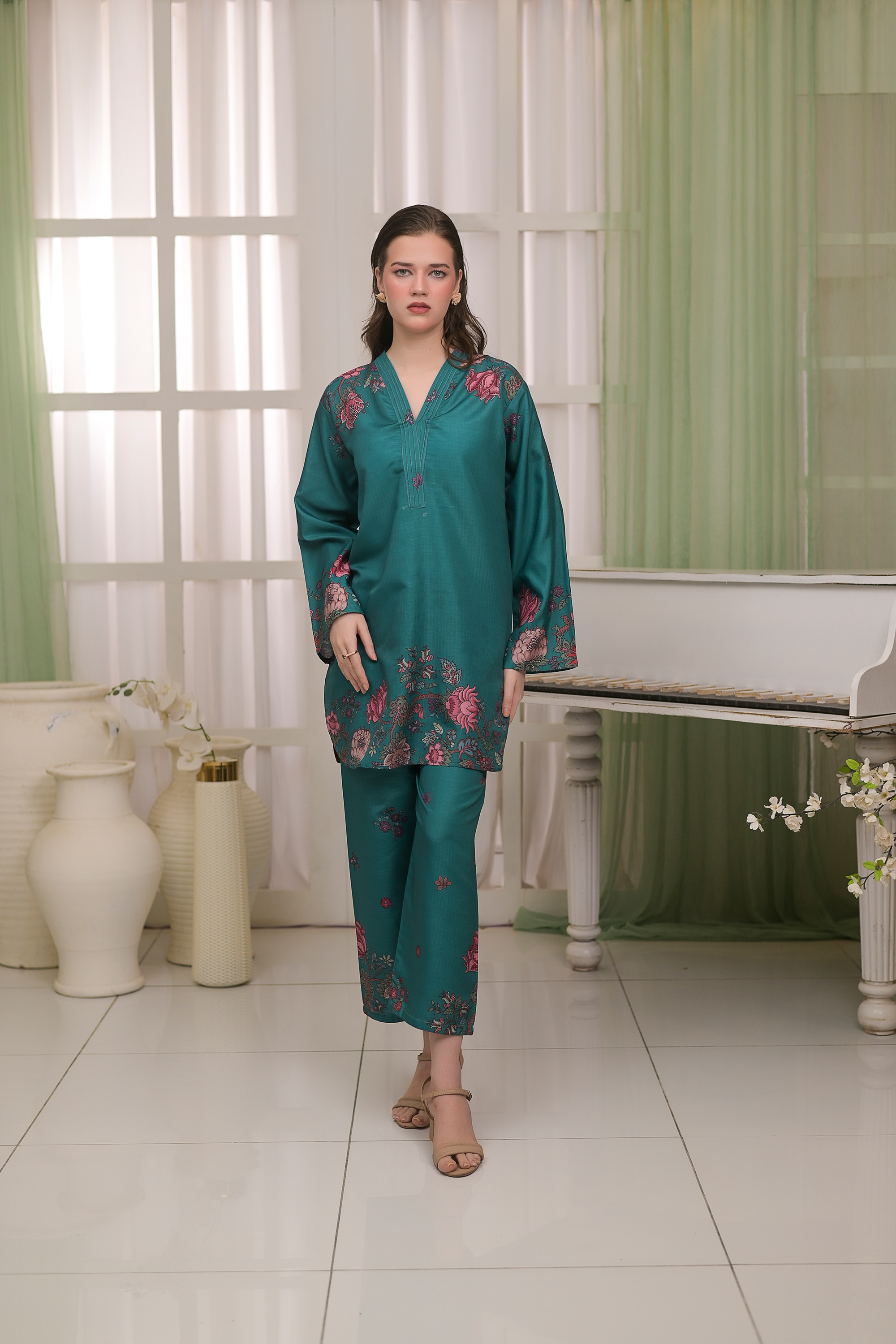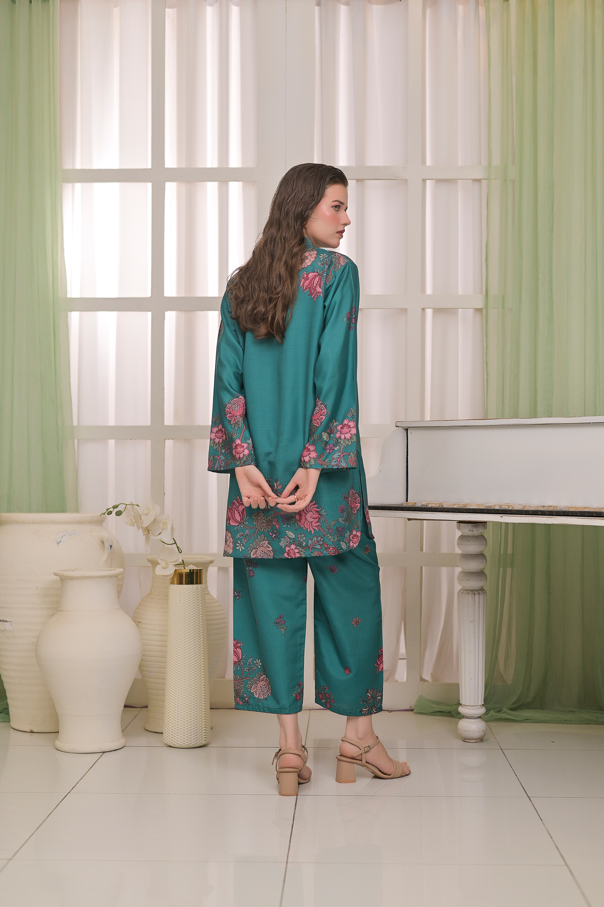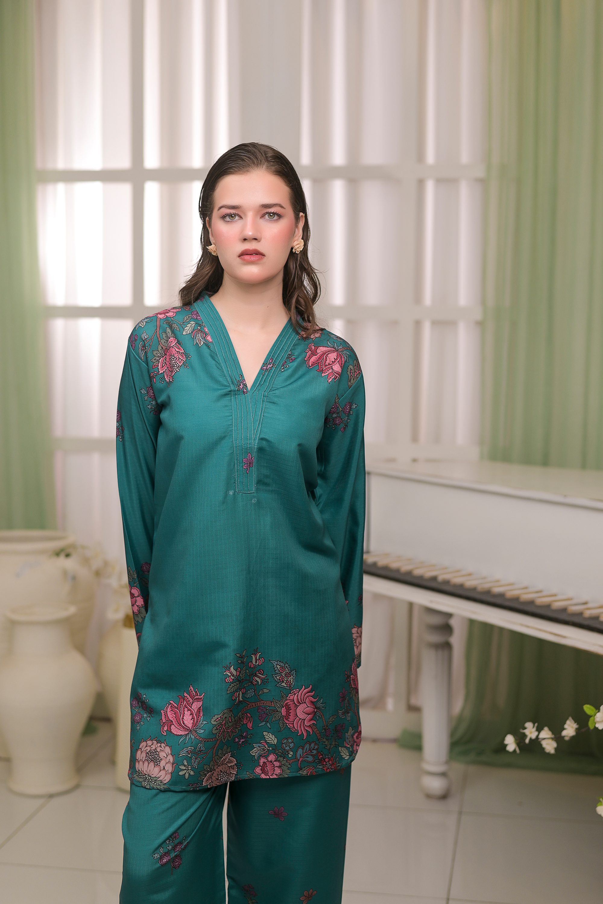 Step into effortless elegance with Jade Petal, a beautifully stitched 2-piece suit crafted from soft and breathable poly lawn fabric. The rich teal hue adorned with delicate pink floral patterns evokes a sense of refined grace and modern femininity. Designed for all-day comfort with a relaxed fit and straight trousers, this ensemble perfectly balances timeless beauty with contemporary charm.