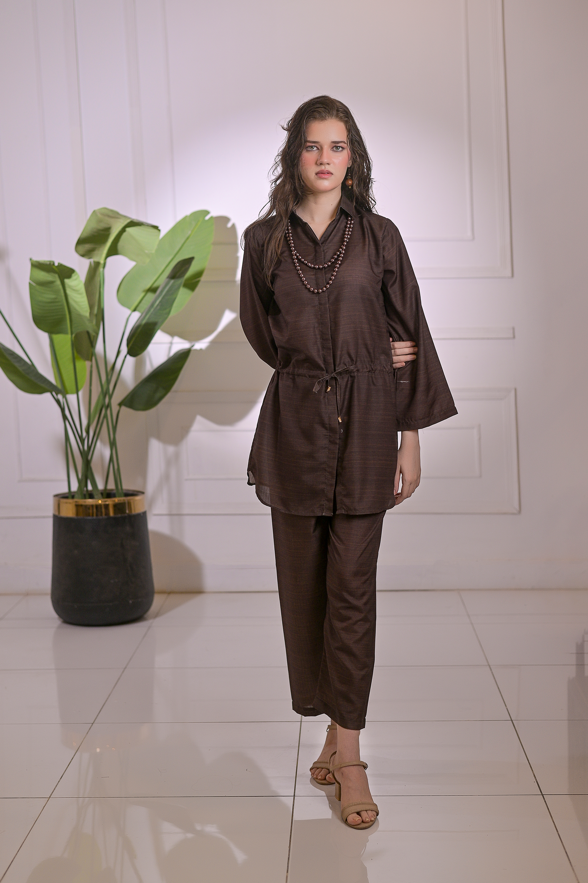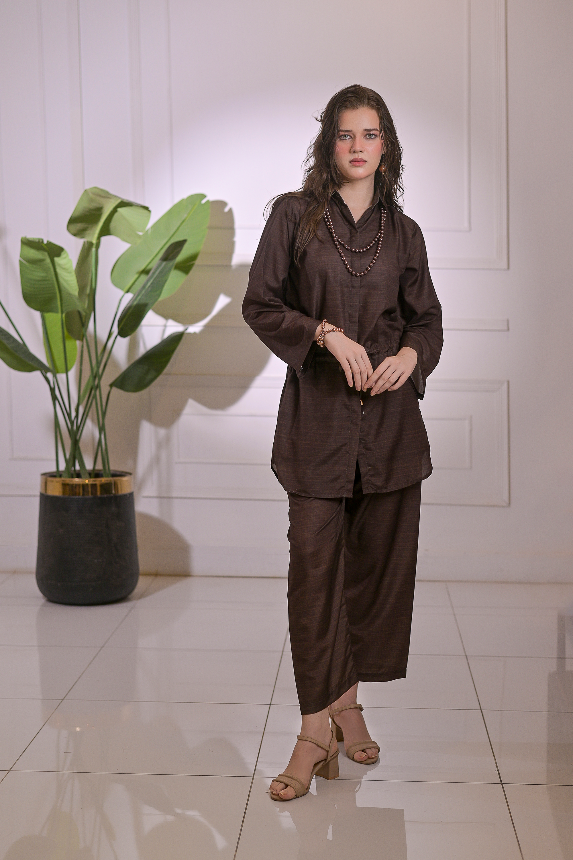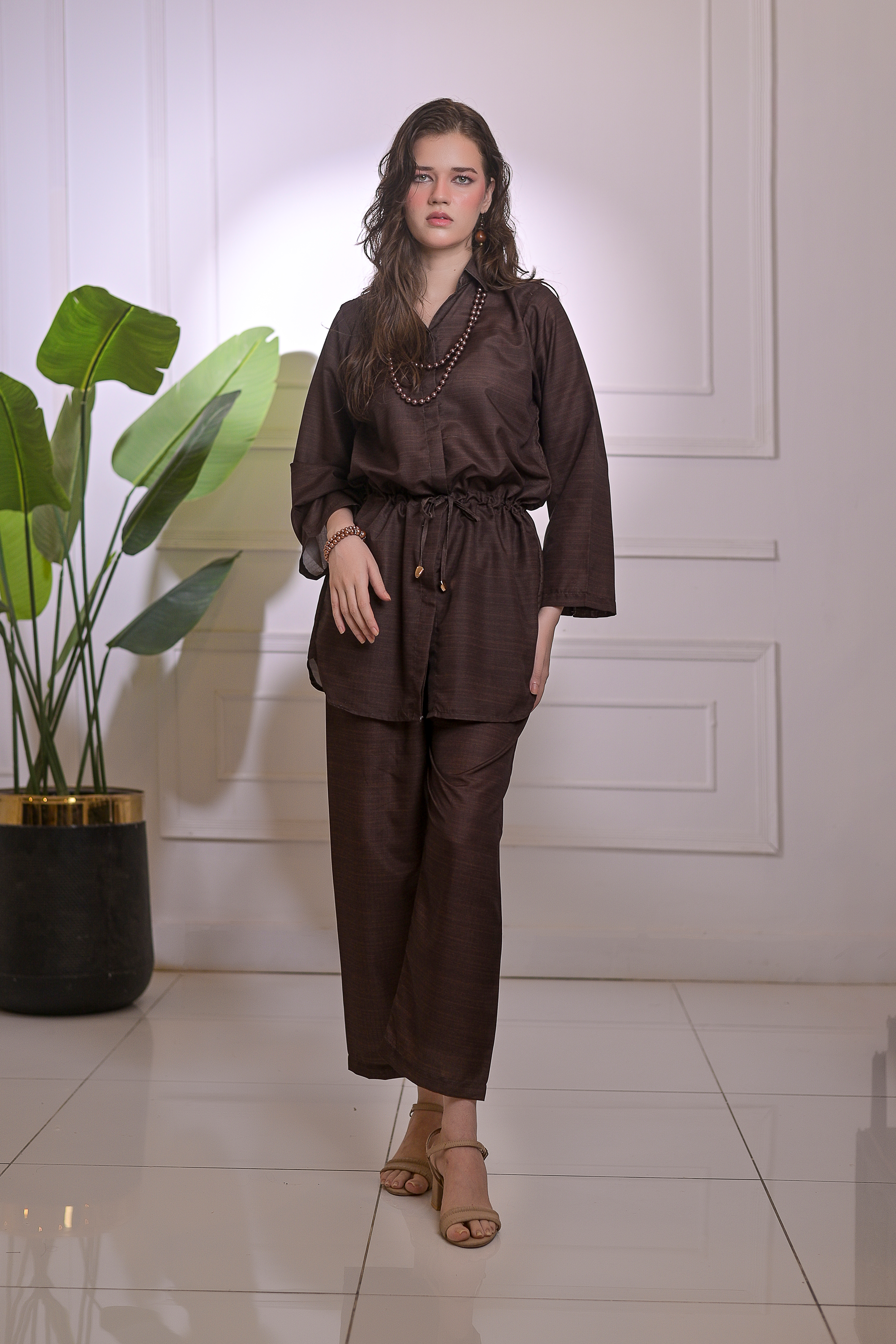 Redefine minimal elegance with Mocha Grace, a 2-piece stitched ensemble made from premium blended linen. The rich mocha hue exudes sophistication, while the relaxed silhouette with a drawstring waist adds a modern, effortless charm. Perfect for transitioning from day to evening wear, this outfit offers both comfort and chic versatility for every occasion.