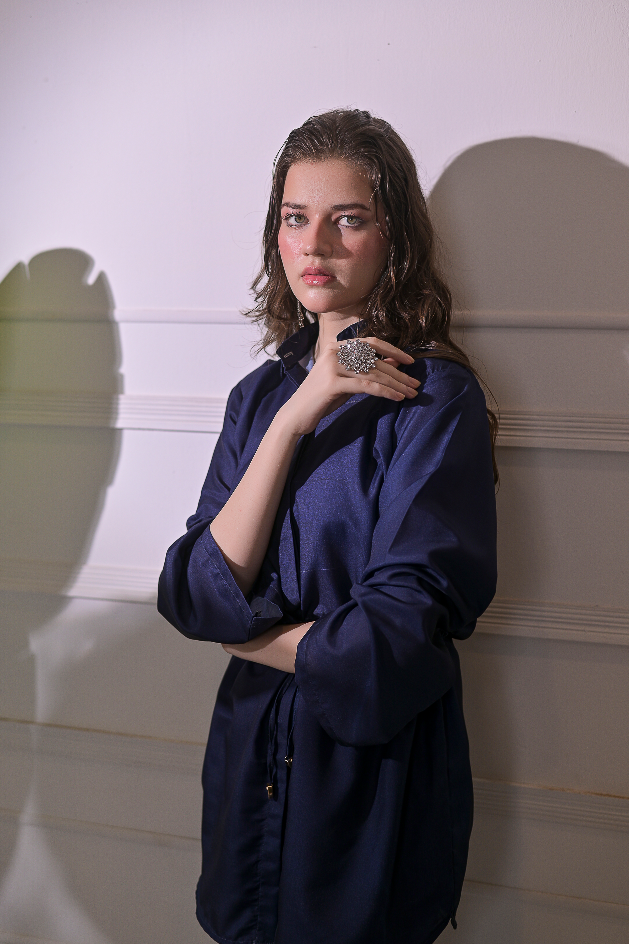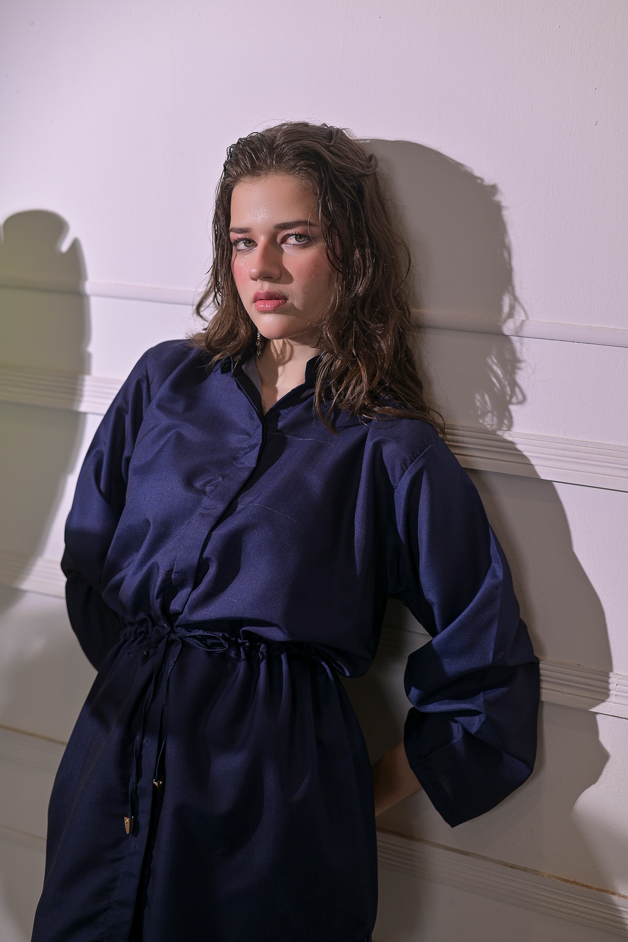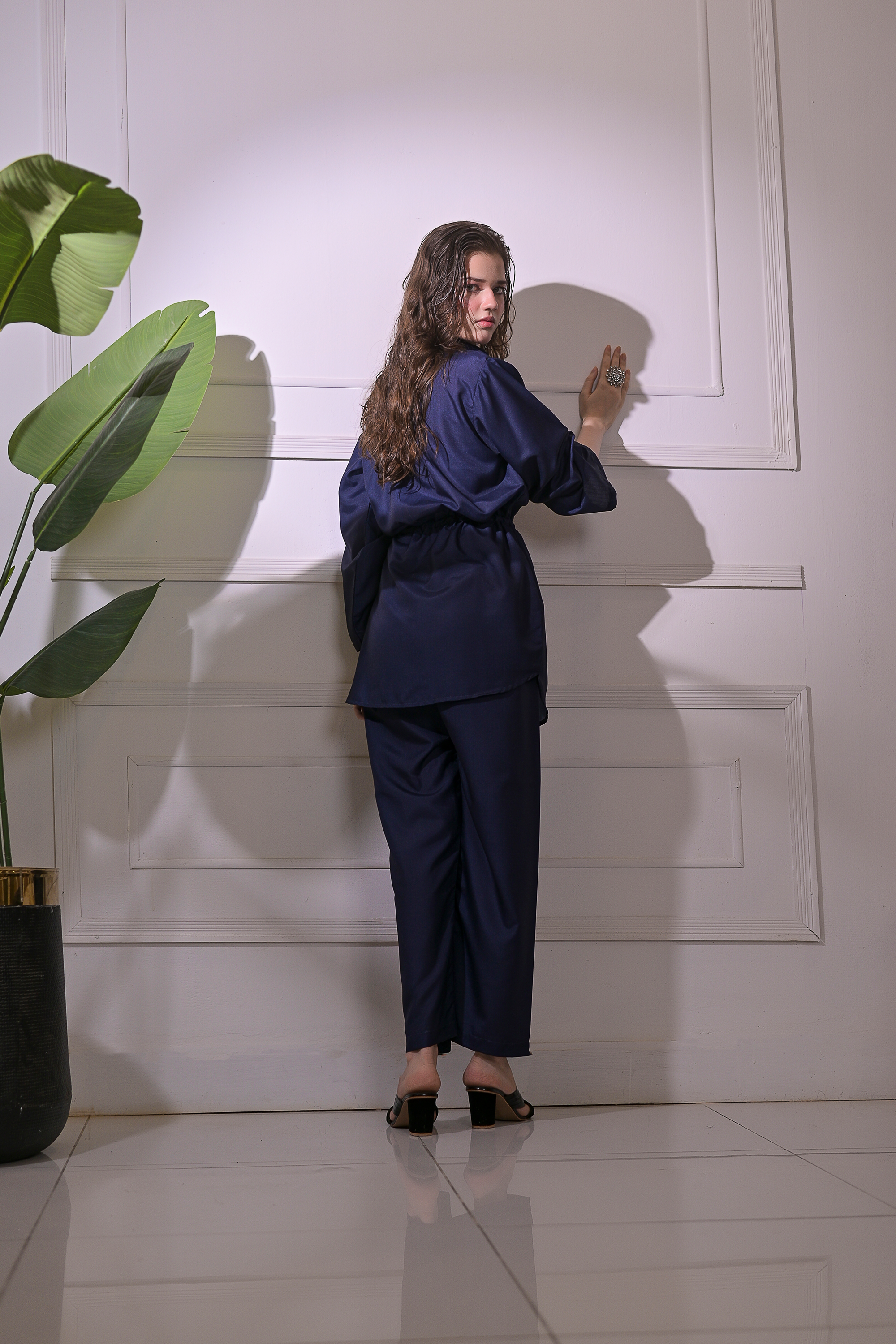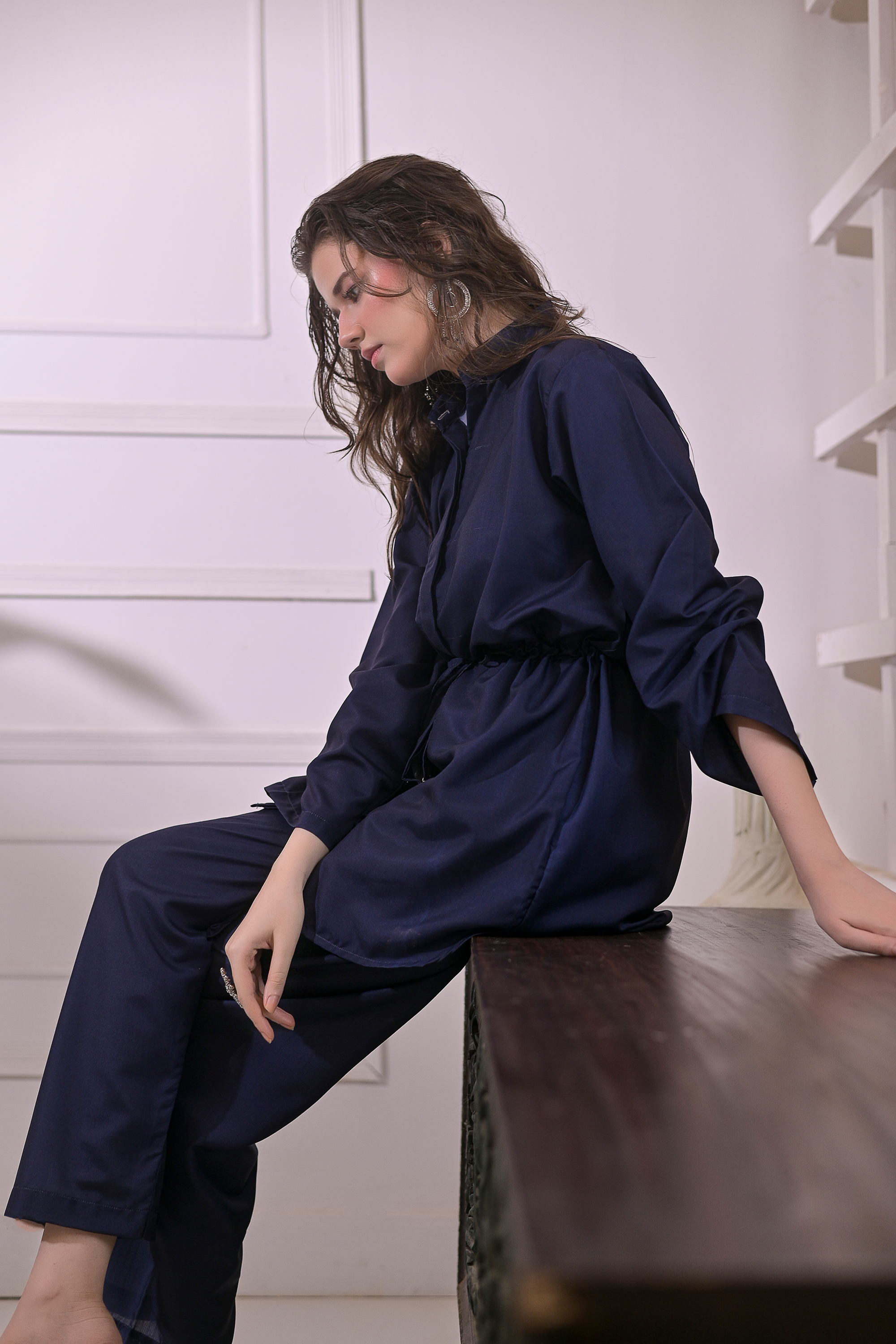 Radiate calm confidence with Ocean Whisper, a refined 2-piece stitched suit tailored from premium blended linen. The deep navy tone exudes sophistication, while the adjustable drawstring waist and straight-fit trousers ensure a flattering, effortless silhouette. Perfect for smart casual outings or elegant everyday wear, this ensemble blends comfort, grace, and modern minimalism in perfect harmony.